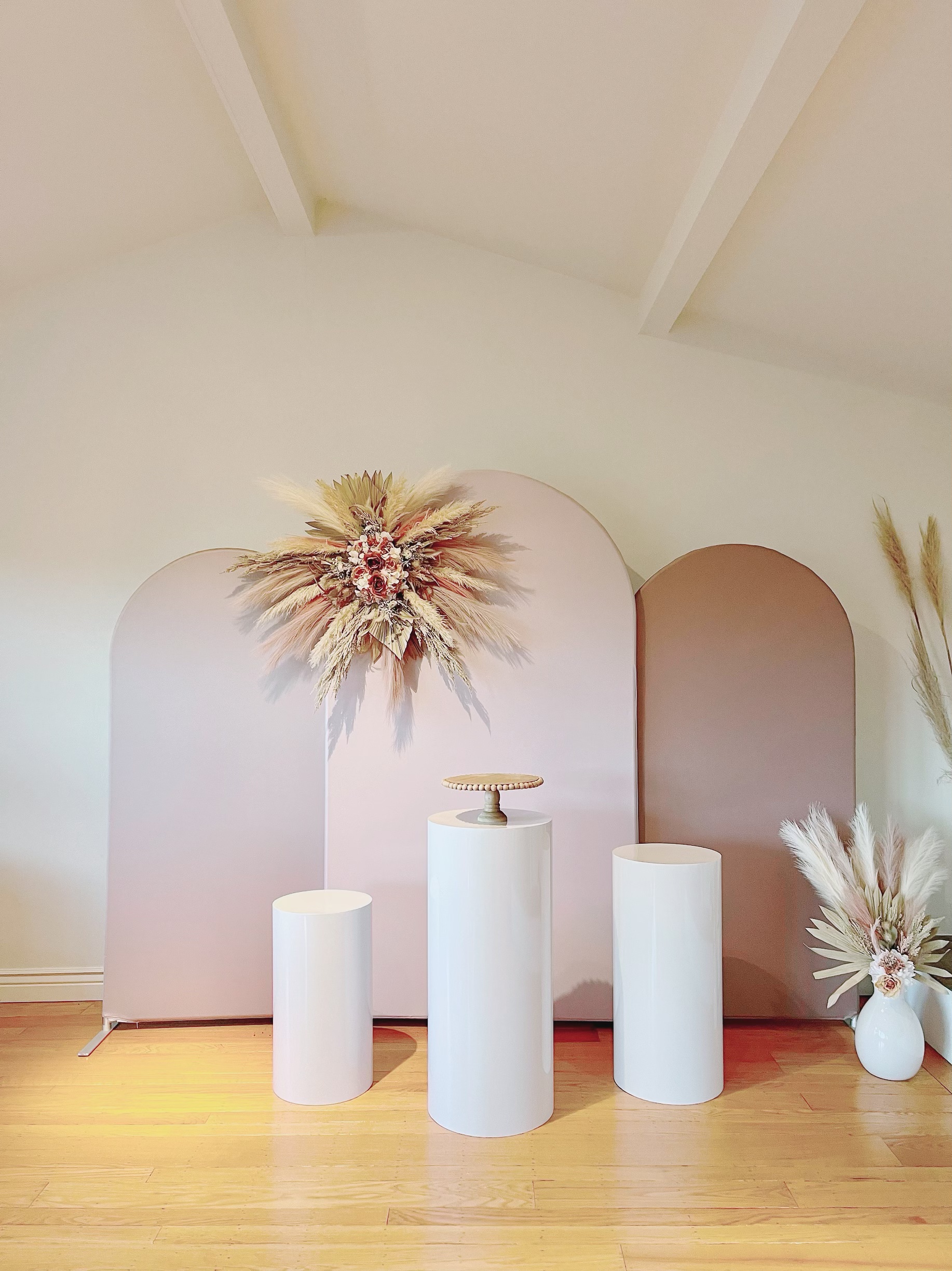 $500 includes 2 floral arrangement, 3 pedestals and 3 backdrops.