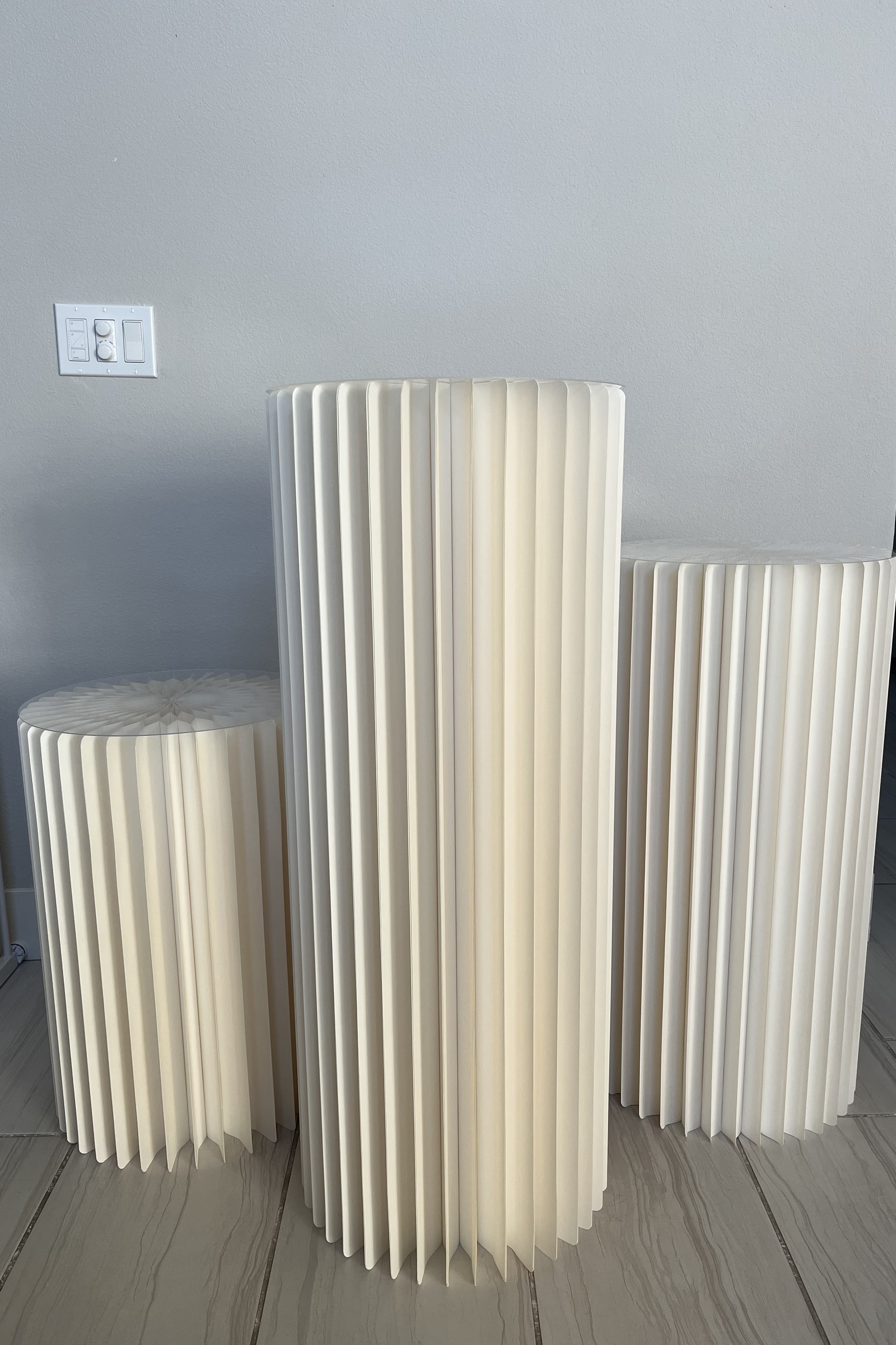 5 white pedestals for $150