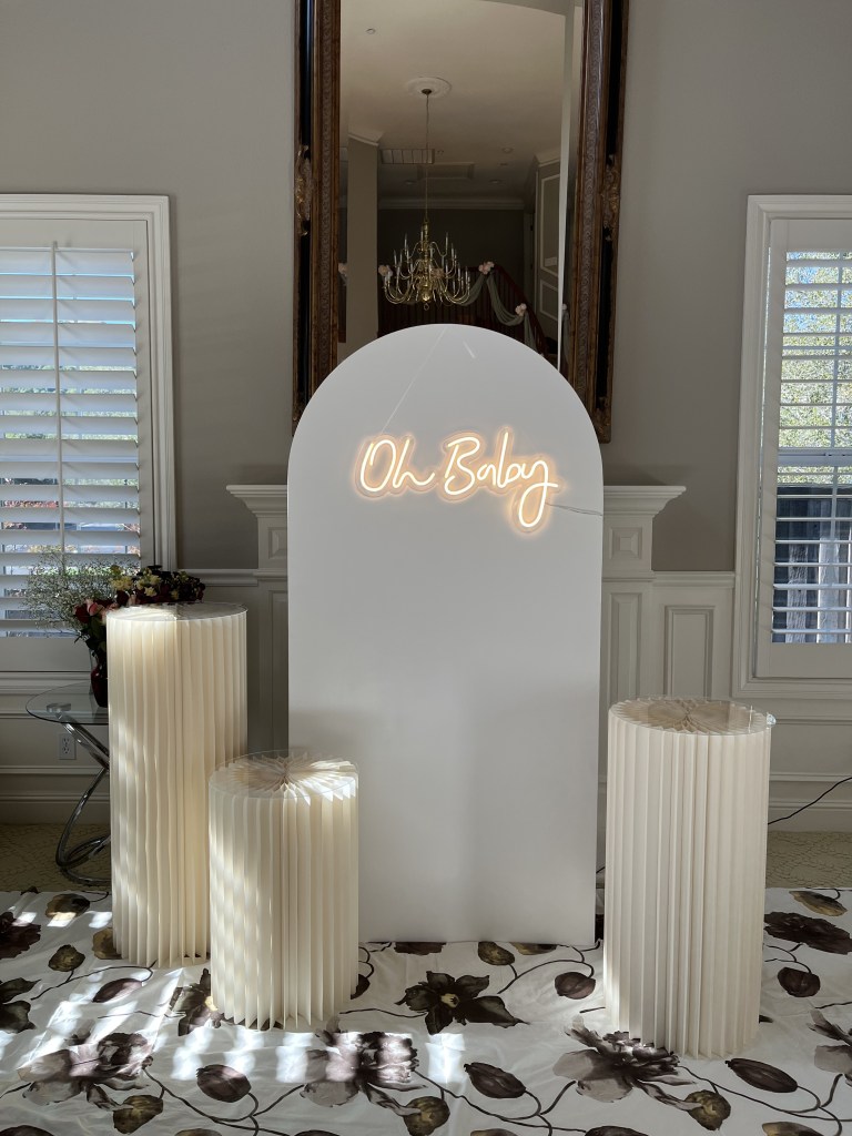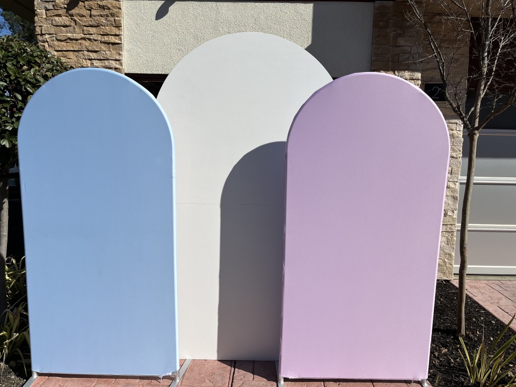 Chaira metal arches with covers 3 for $200 or $75/piece. Wood chiara arches $100/piece. Round arch $75 rental. Open arch rental $100. Add custom writing for $10 per word/design. *Add balloon garland for extra fee.