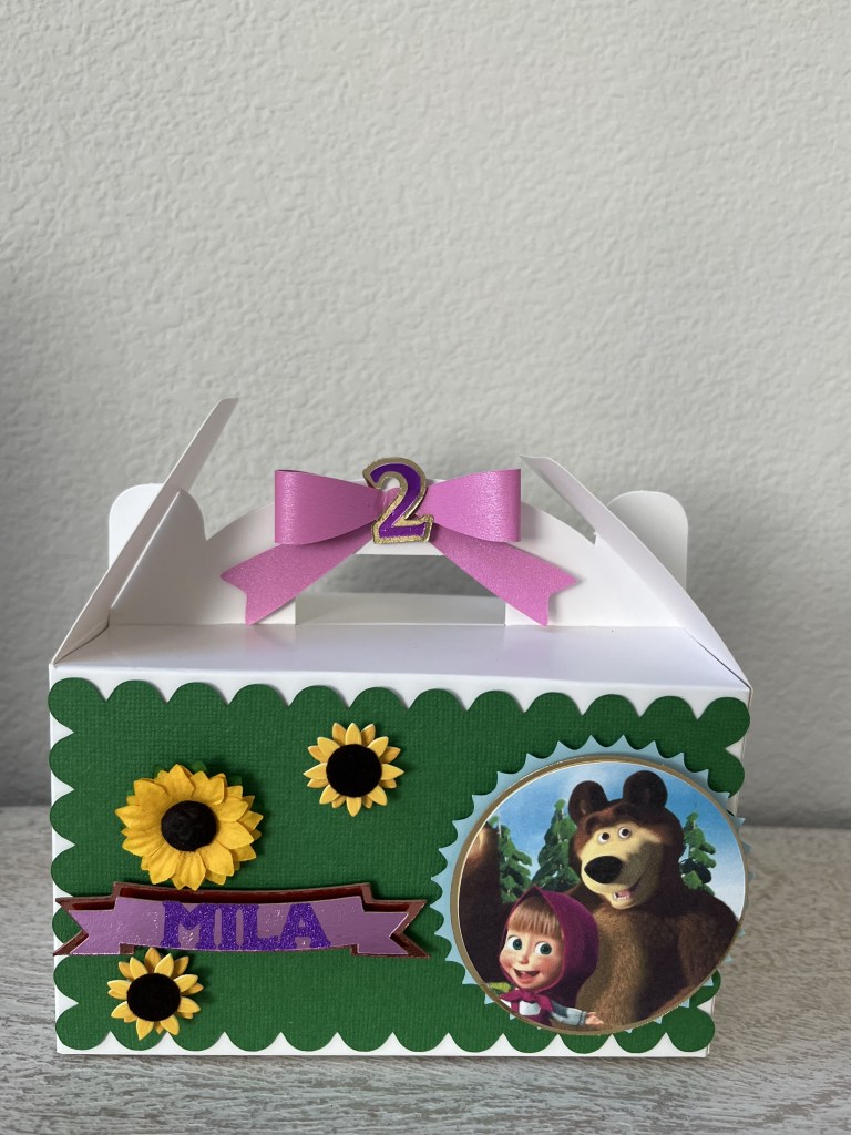 12 custom party favors. Please provide the theme/colors and the name for the party box favors.